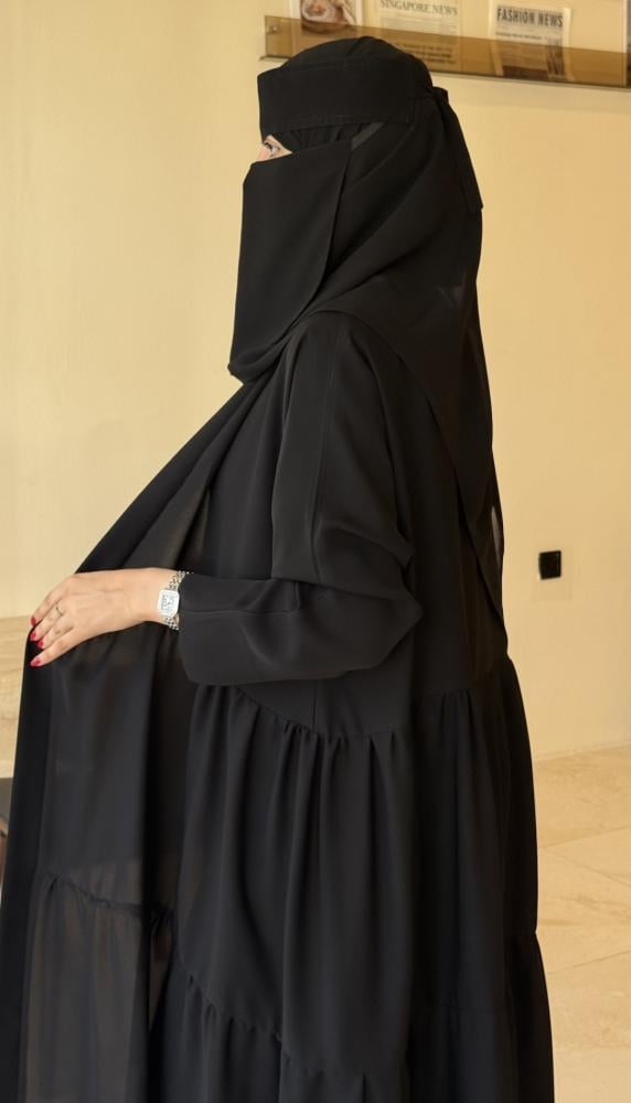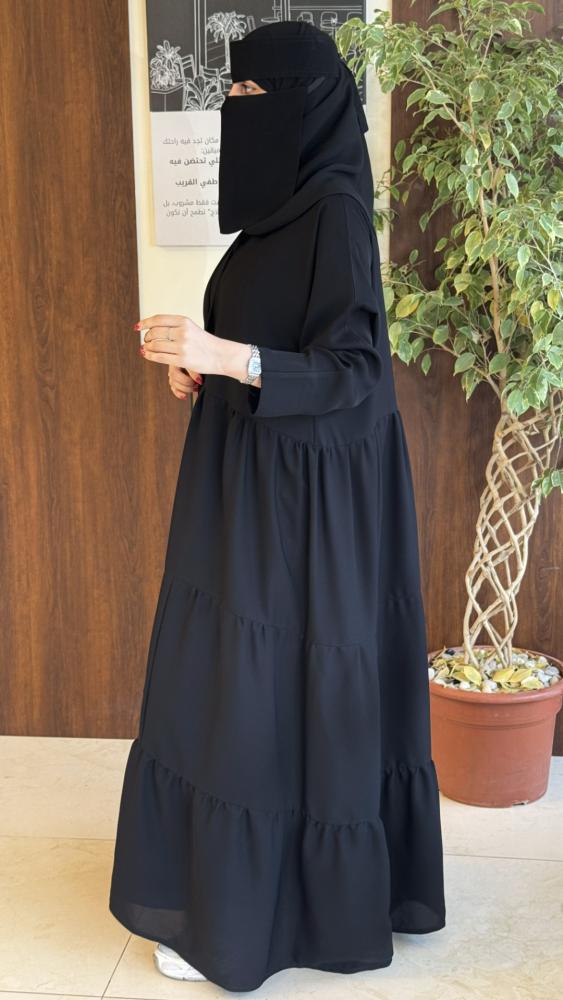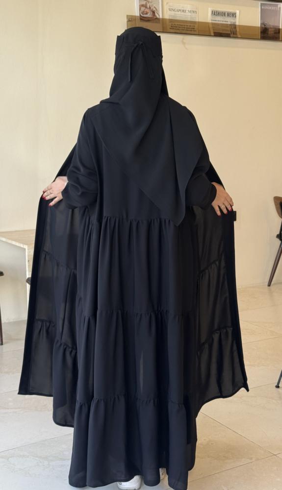 عباية فاخرة بتصميم أنثوي راقٍ تجي بقصة كلوش كاملة تضيف انسيابية فخمة وحركة ناعمة بكل خطوة 💃🏻.