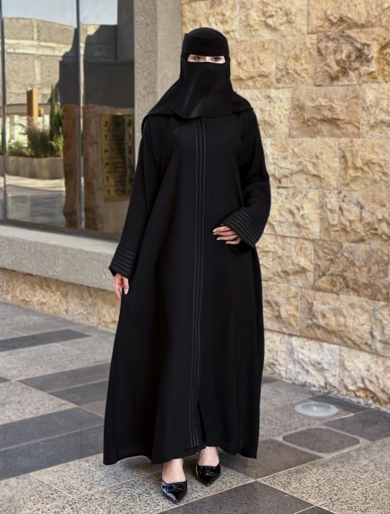 - طول العباية يؤخذ من الكتف الى أسفل الكعبين (من الأمام)