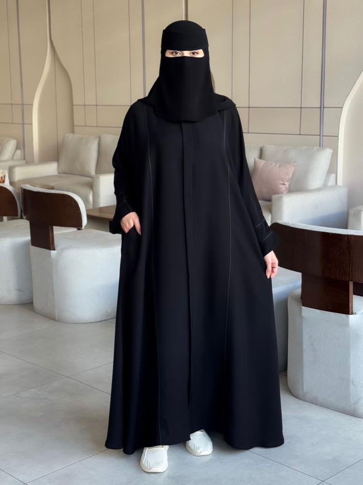 عباية فخمة من قماش الإنترنت الملكي المعروف بنعومته ولمعته الفاخرة، يميزها سوادها الفاحم اللي يعطيها طابع راقي وأنيق 👑.