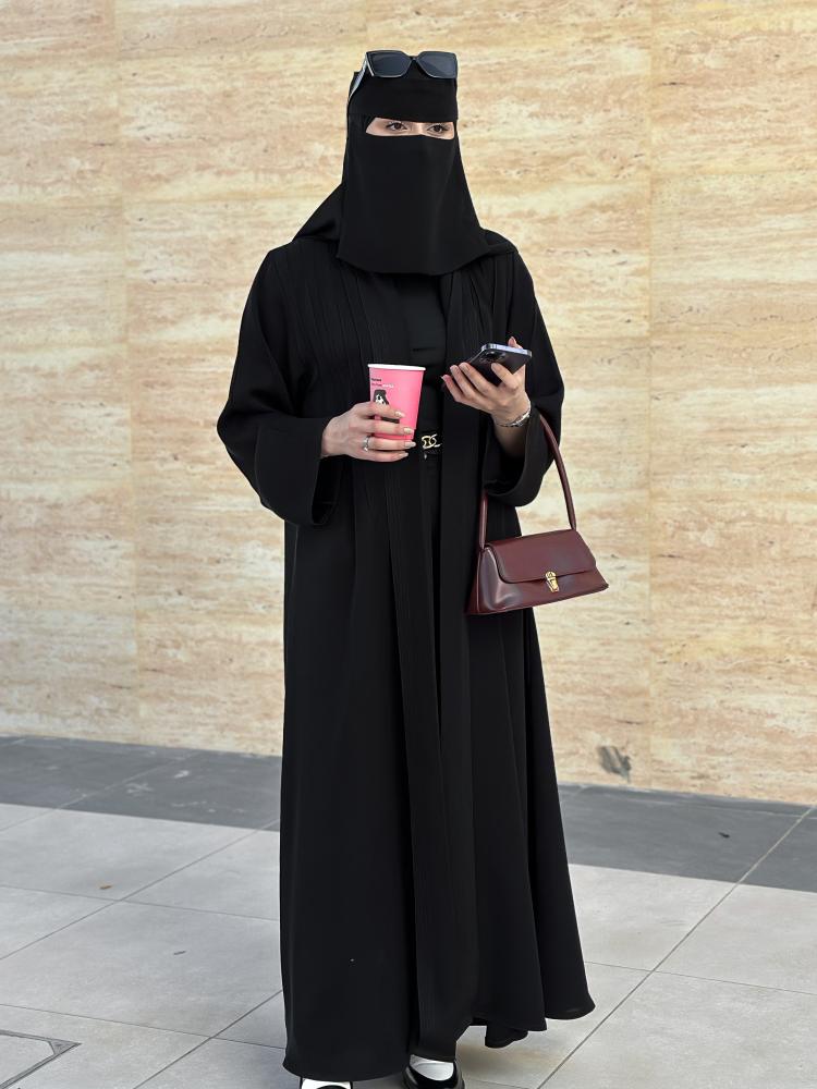 - طول العباية يؤخذ من الكتف الى أسفل الكعبين (من الأمام)