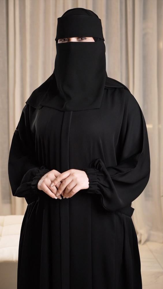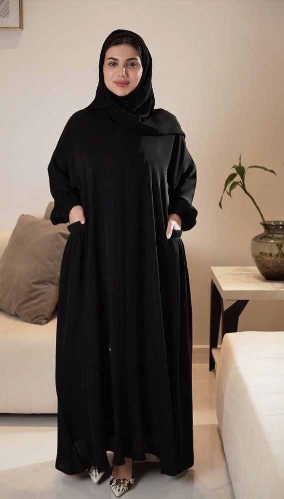 - طول العباية يؤخذ من الكتف الى أسفل الكعبين (من الأمام)